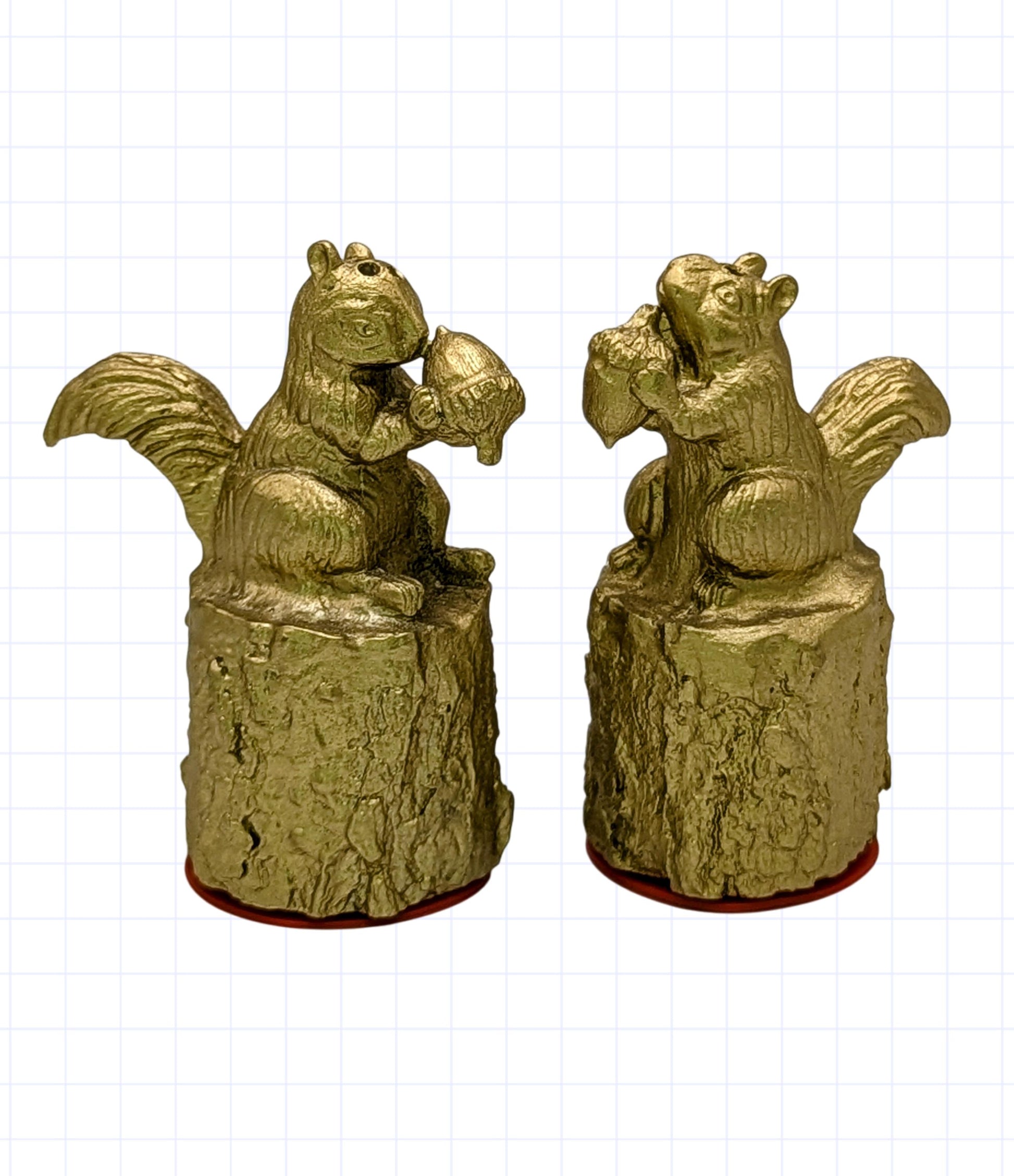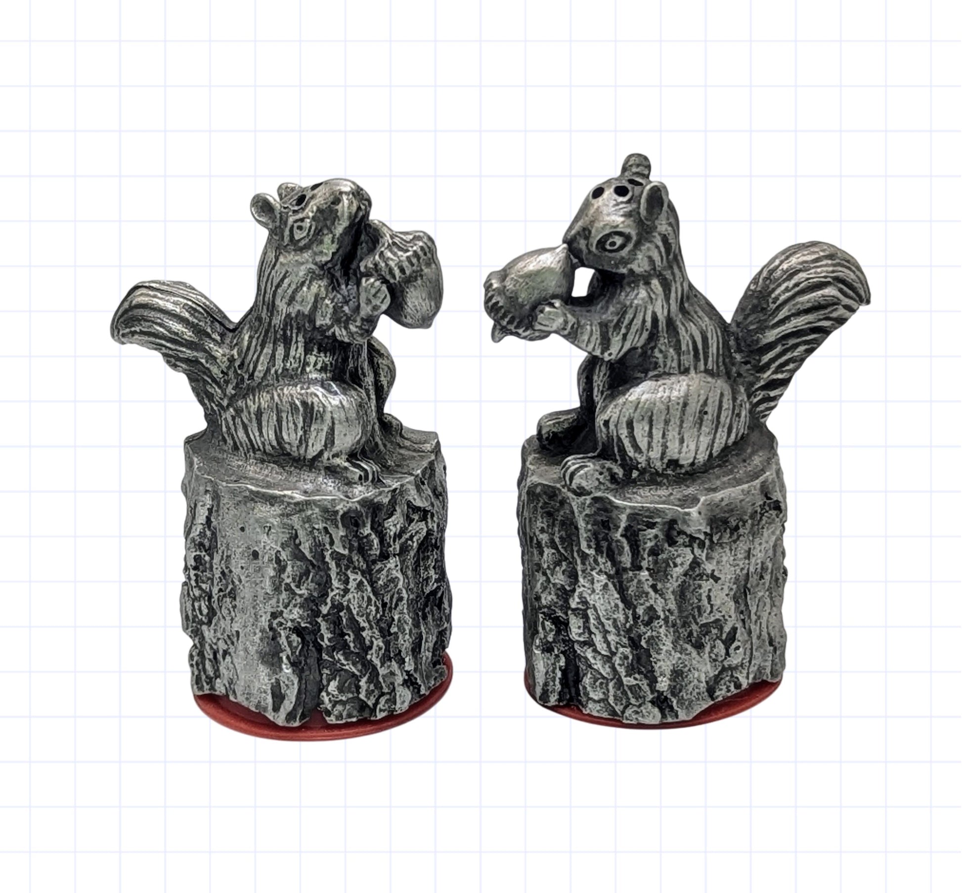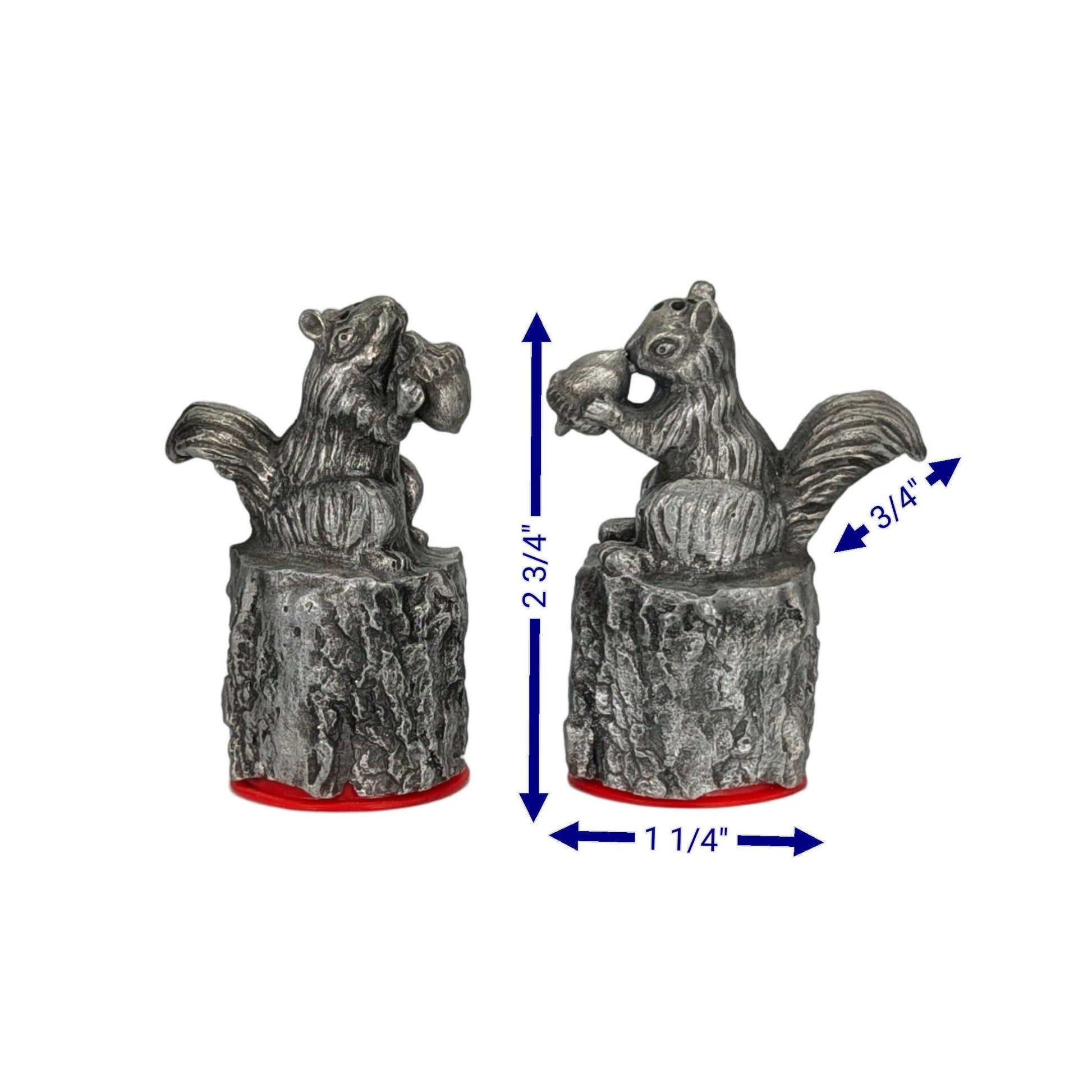 Charming Miniature Minimalist Pewter Squirrel Salt & Pepper Shakers Set Decor Collectible