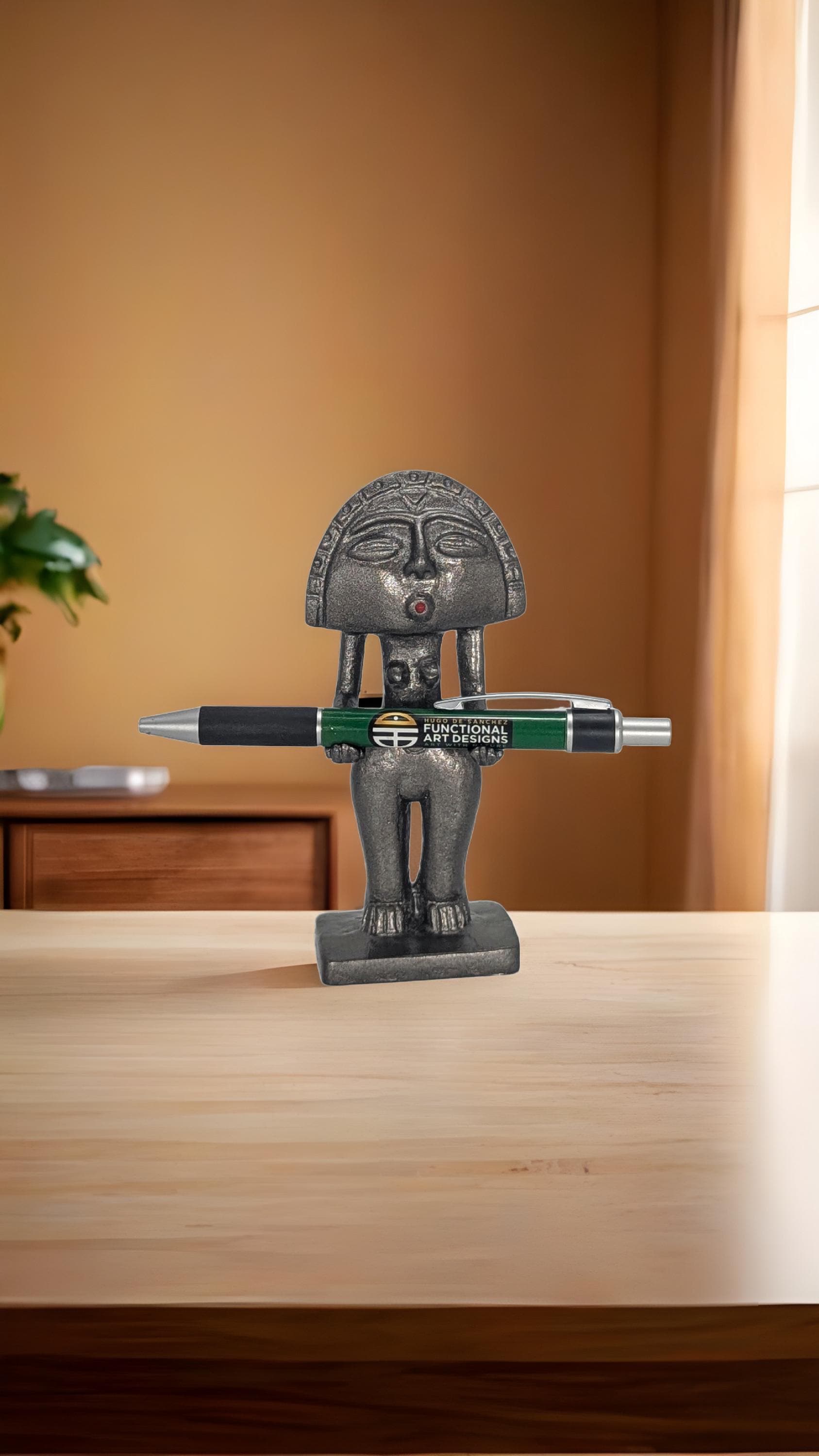 Bring a piece of history and spirituality to your desk with this unique Taino Moon Goddess pen holder. Inspired by the indigenous Taino culture of the Caribbean, this rustic-style piece is a functional work of art.