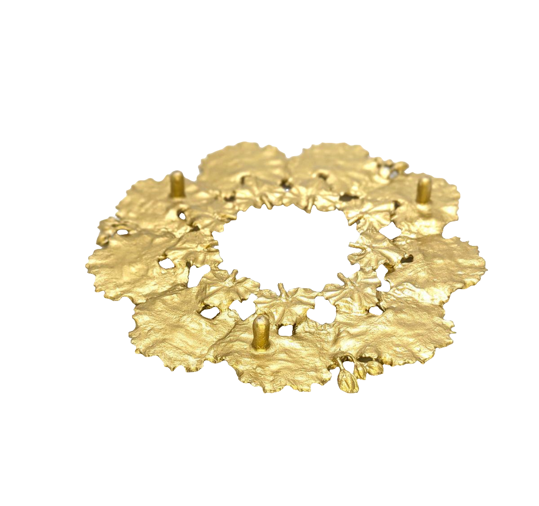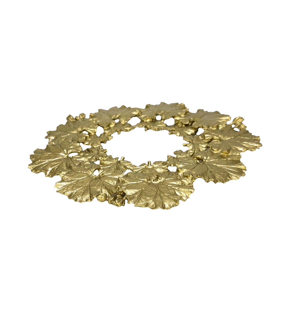 Introducing our elegant Geranium Trivet, the perfect addition to any kitchen or dining room! This beautiful trivet features a stunning wreath design, with intricately arranged leaves in a circle shape. Not only does it add a touch of style to your home decor, but it also serves a practical purpose by protecting your countertops and tables from hot pots and pans. Made from high-quality metal alloy, this trivet is durable and beautiful. Whether you're looking for a thoughtful gift or simply want to treat yourself, the Geranium Trivet is sure to impress. Shop now at our gift shop and add a touch of sophistication to your home! Collection: Nature Bliss.