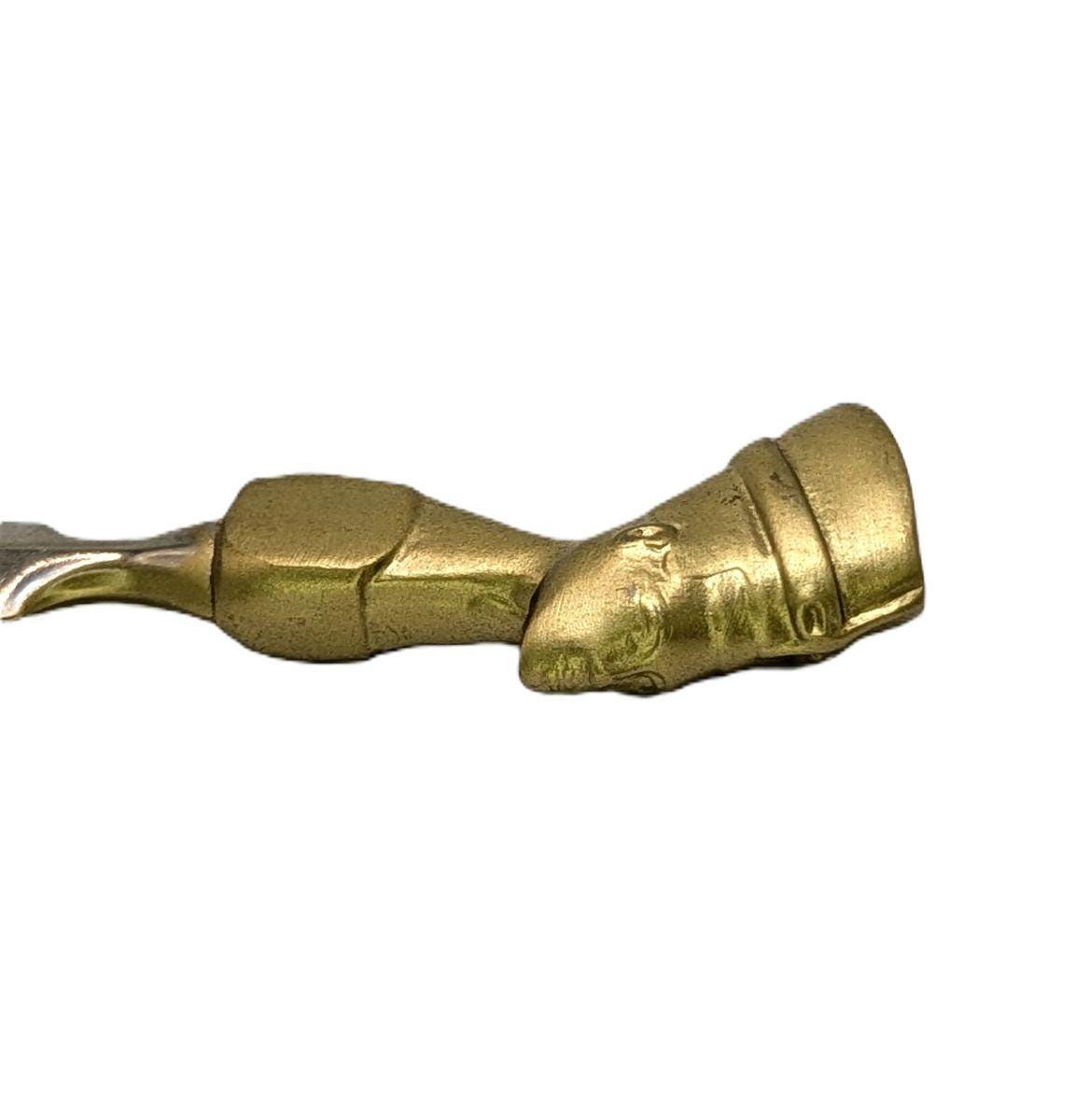 The Nubian Nefertiti Letter Opener is a stunning addition to any desk or workspace. This intricately designed letter opener is an artistic concept of the legendary Queen Nefertiti. The elegant and regal design is sure to impress any recipient, making it the perfect gift for any occasion. Whether used for opening letters or simply displayed as a decorative piece, this letter opener adds a touch of sophistication to any setting. Elevate your office decor with the Nubian Nefertiti Letter Opener, available now! Collection: Human Nature.