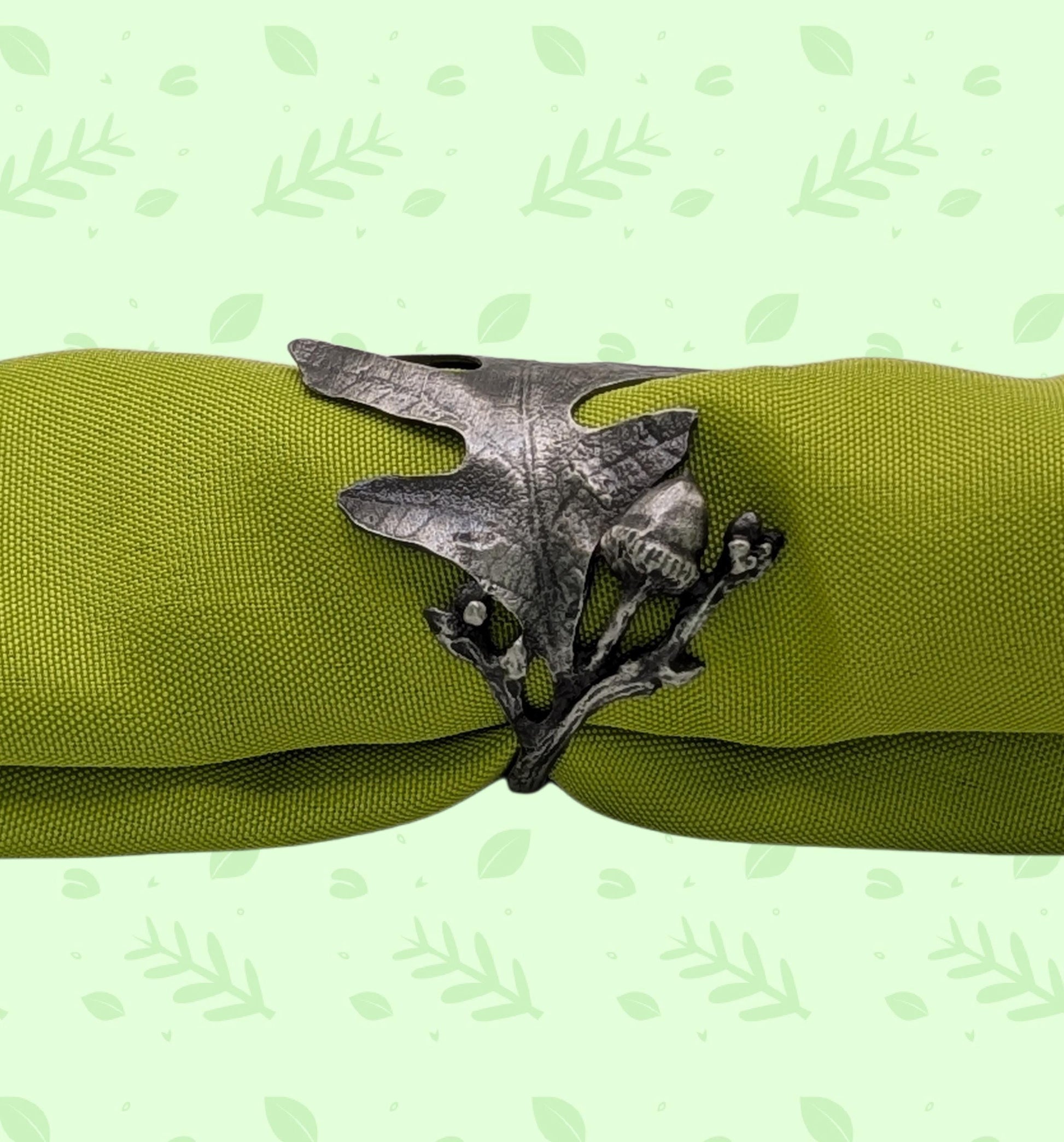 Add a touch of forest charm to your dining table with our Oak Napkin Ring Set. Crafted using an actual oak leaf and acorn as a template, these napkin rings feature a unique and realistic design that resembles the beauty of mother nature. These versatile napkin rings are perfect for everyday use or special occasions, adding a touch of elegance to any table setting. The set of 4 makes a great gift for housewarmings, weddings, or any occasion. Upgrade your table decor with these stylish and practical napkin rings from our gift shop collection.