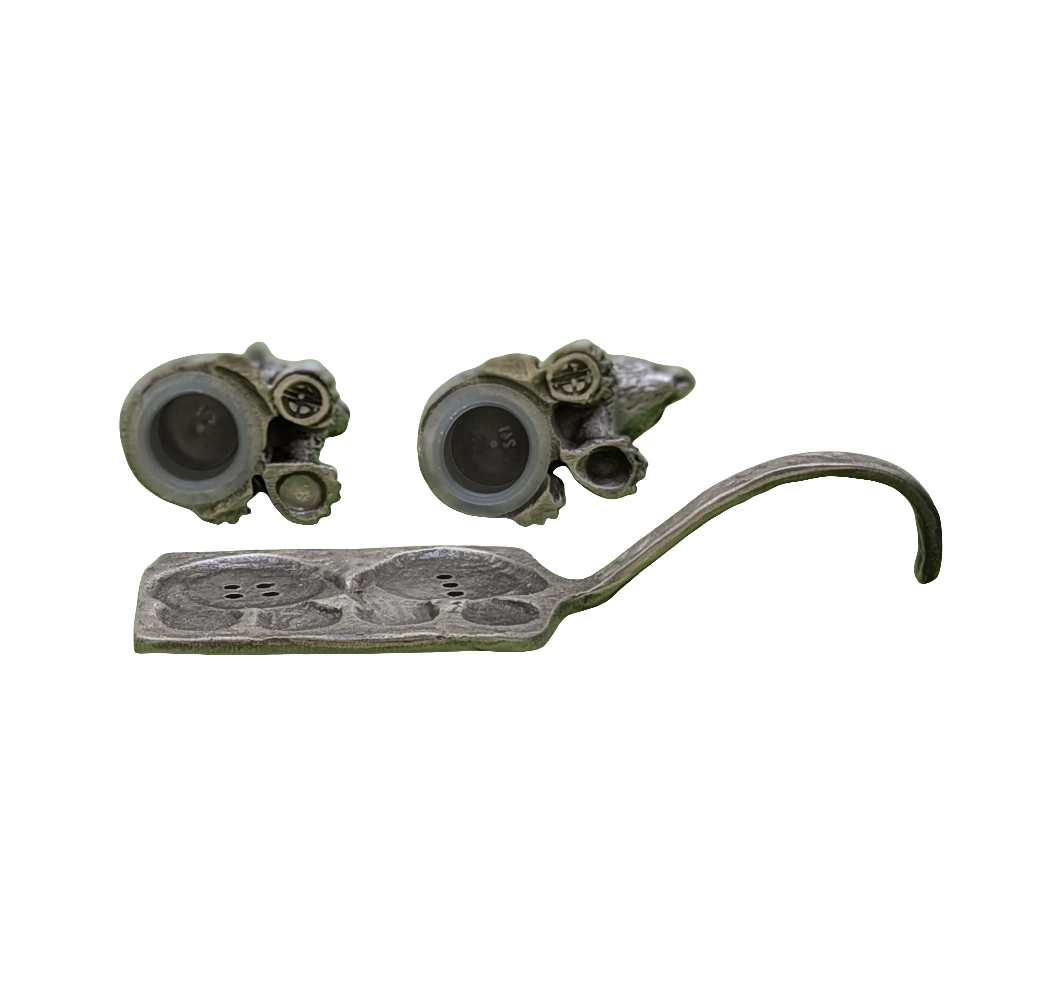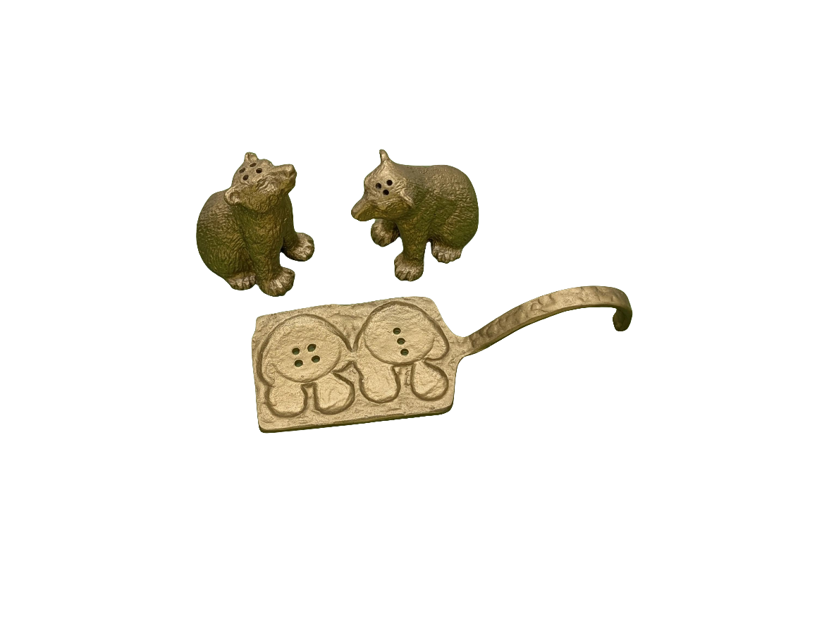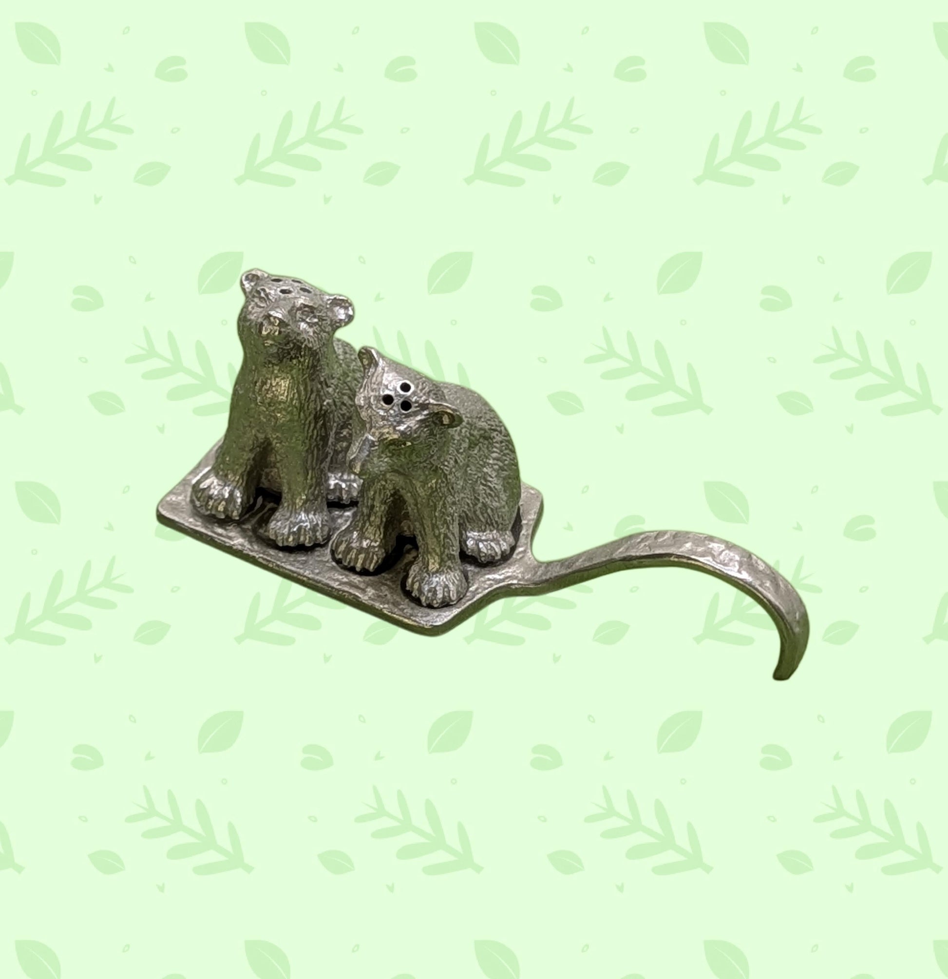 Polar Bear Cubs Miniature Minimalist Pewter Salt & Pepper Shakers Set Collectible