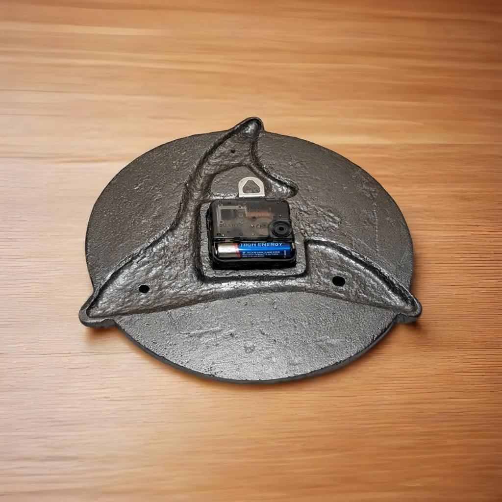 Bring a piece of ancient Caribbean history and art into your home with this unique, handcrafted wall clock. Inspired by the powerful and mysterious Taino trigonolito zemis, this clock is more than just a timepiece—it's a work of art. Material: Resin. Seiko Silent Quartz Movement.